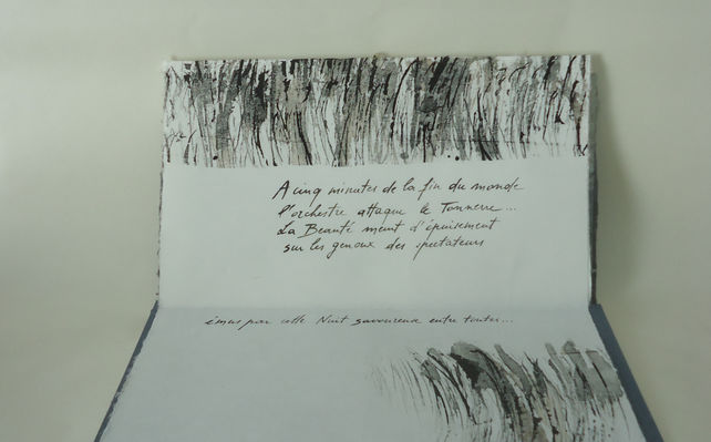 Lentement, je poursuis cette exploration par des livres d’artiste et par la peinture, en résonance à ses textes.